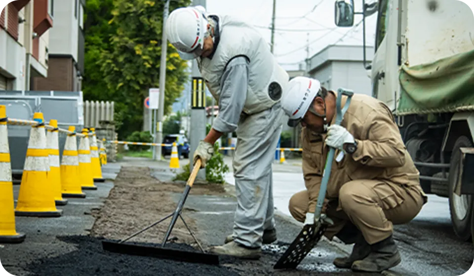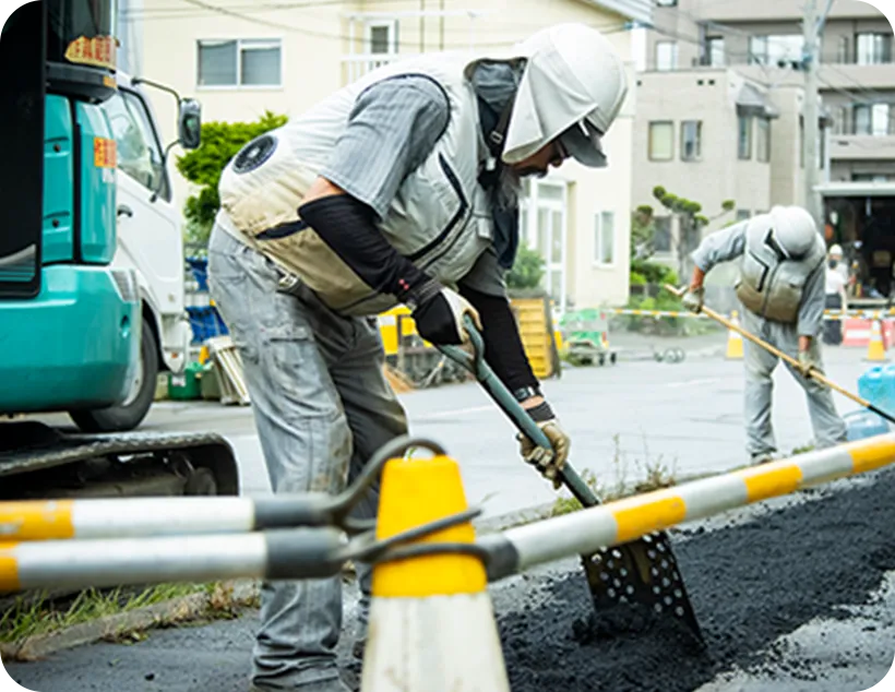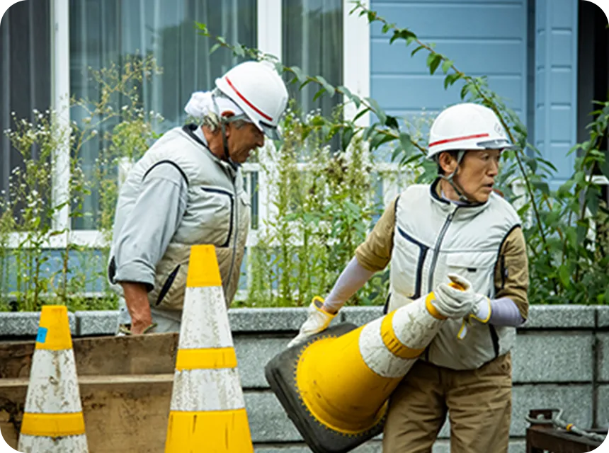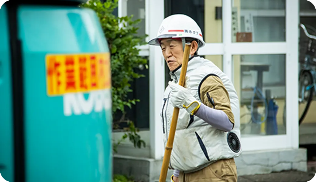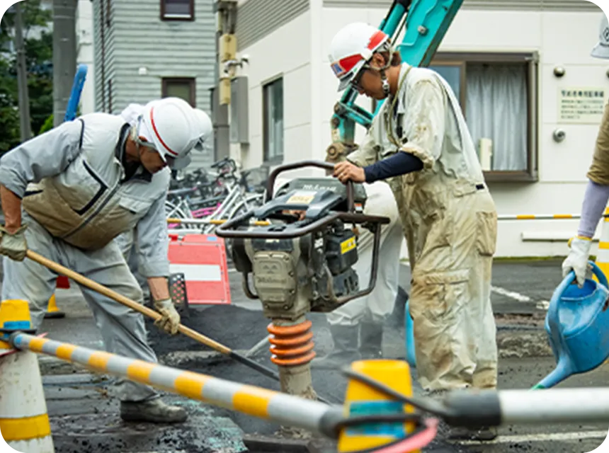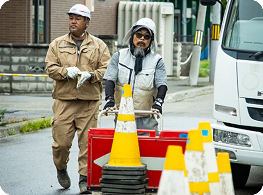 チームで現場を進めながら、ガス工事や土木作業、交通整理・警備など幅広く手掛けます。