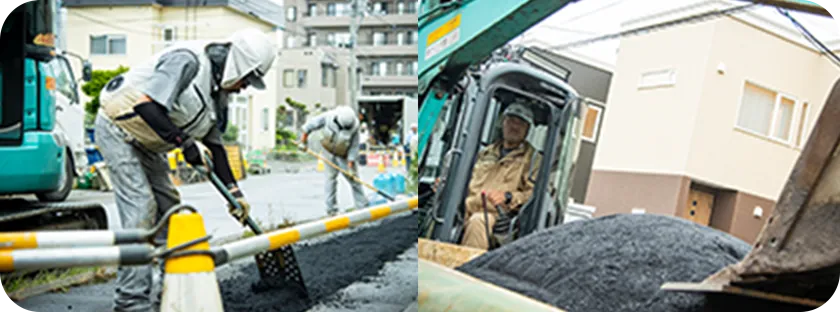 チームで現場を進めながら、ガス工事や土木作業、交通整理・警備など幅広く手掛けます。