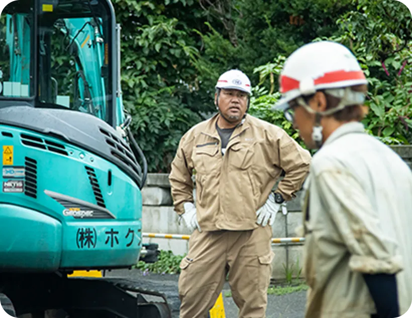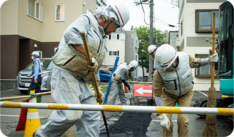 チームで現場を進めながら、ガス工事や土木作業、交通整理・警備など幅広く手掛けます。