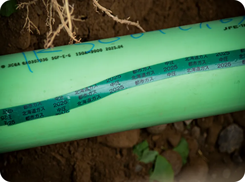 札幌近郊で道路の下にガス管を通し、各家庭や建物までつなぐ工事を日々行っています。
